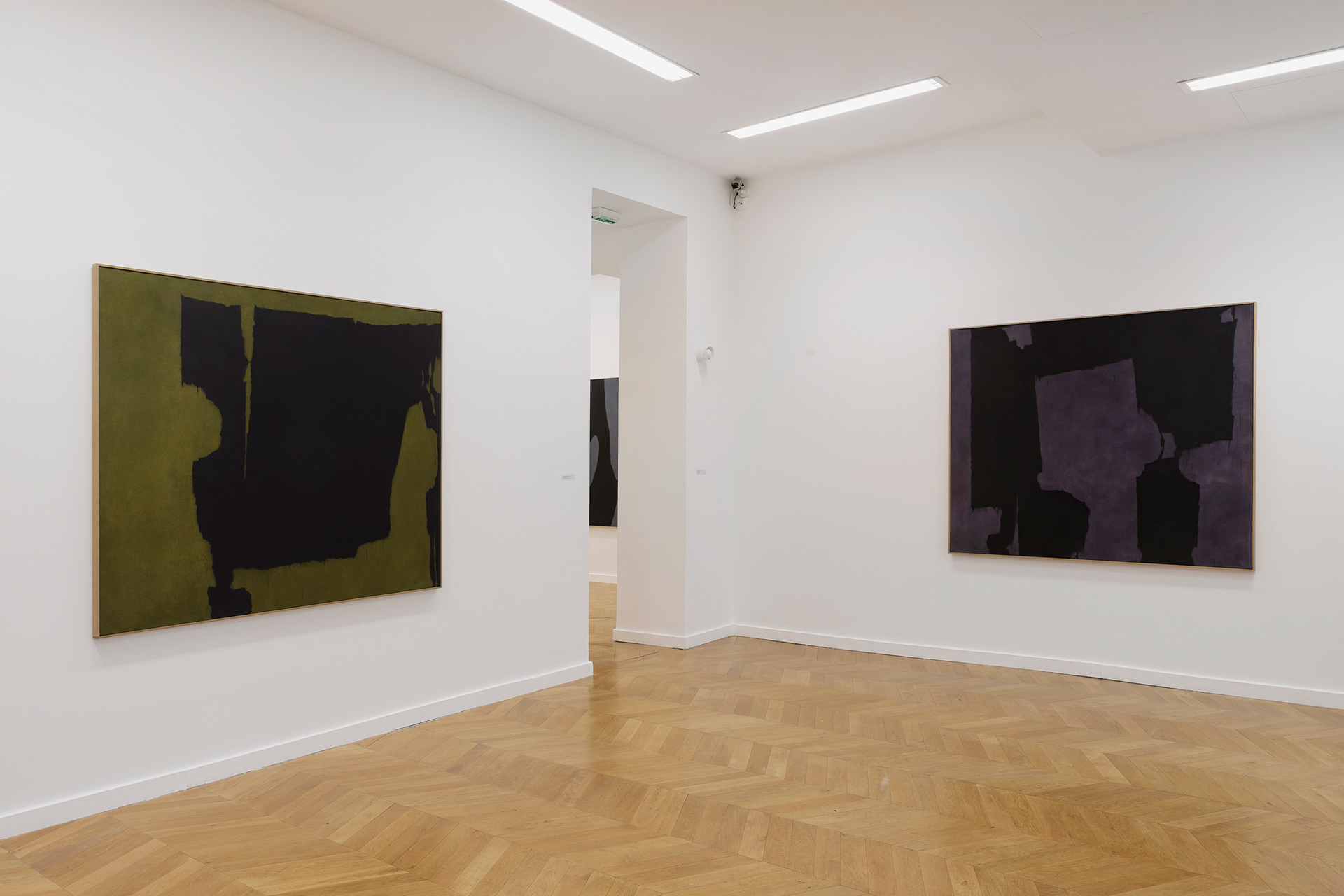 Il n’y a pas d’éclat chromatique spectaculaire chez lui, à de rares exceptions près, mais des aubes progressivement levées sur le gris à partir de la fin des années 1950, des fonds délicatement teintés parcourus par des continents silencieux et profonds, d’un noir total provenant des tréfonds, d’un en-deçà de la toile [...]. Ces aplats agissent tels des blocs tectoniques en lente dérive,