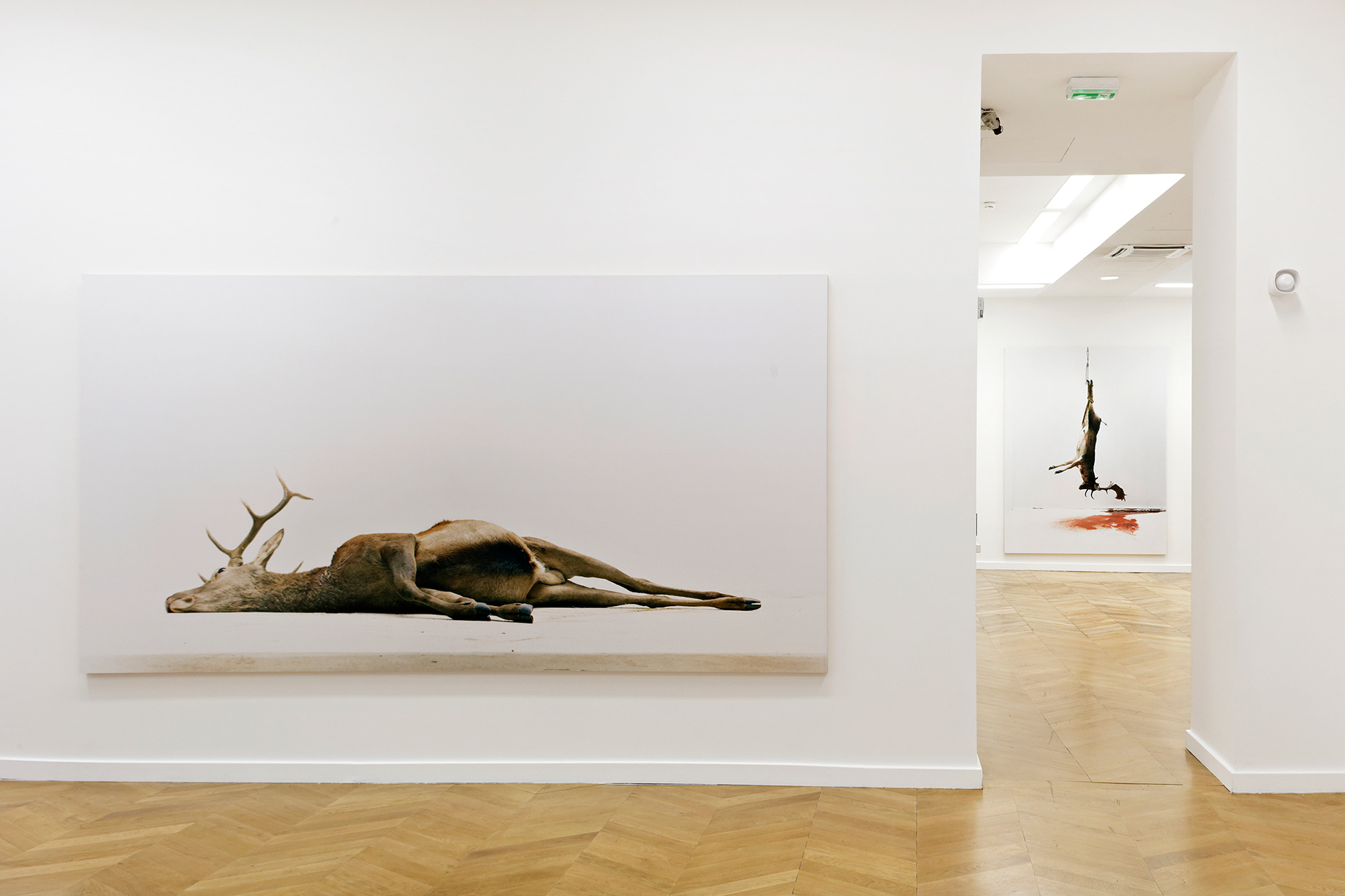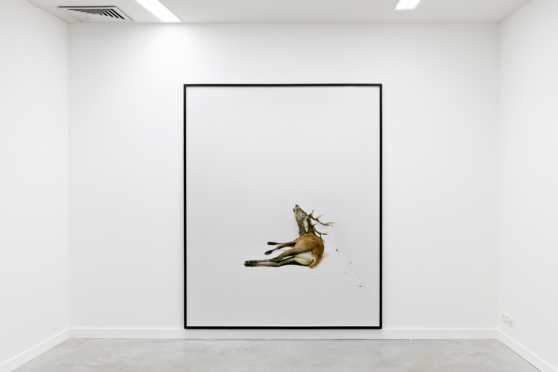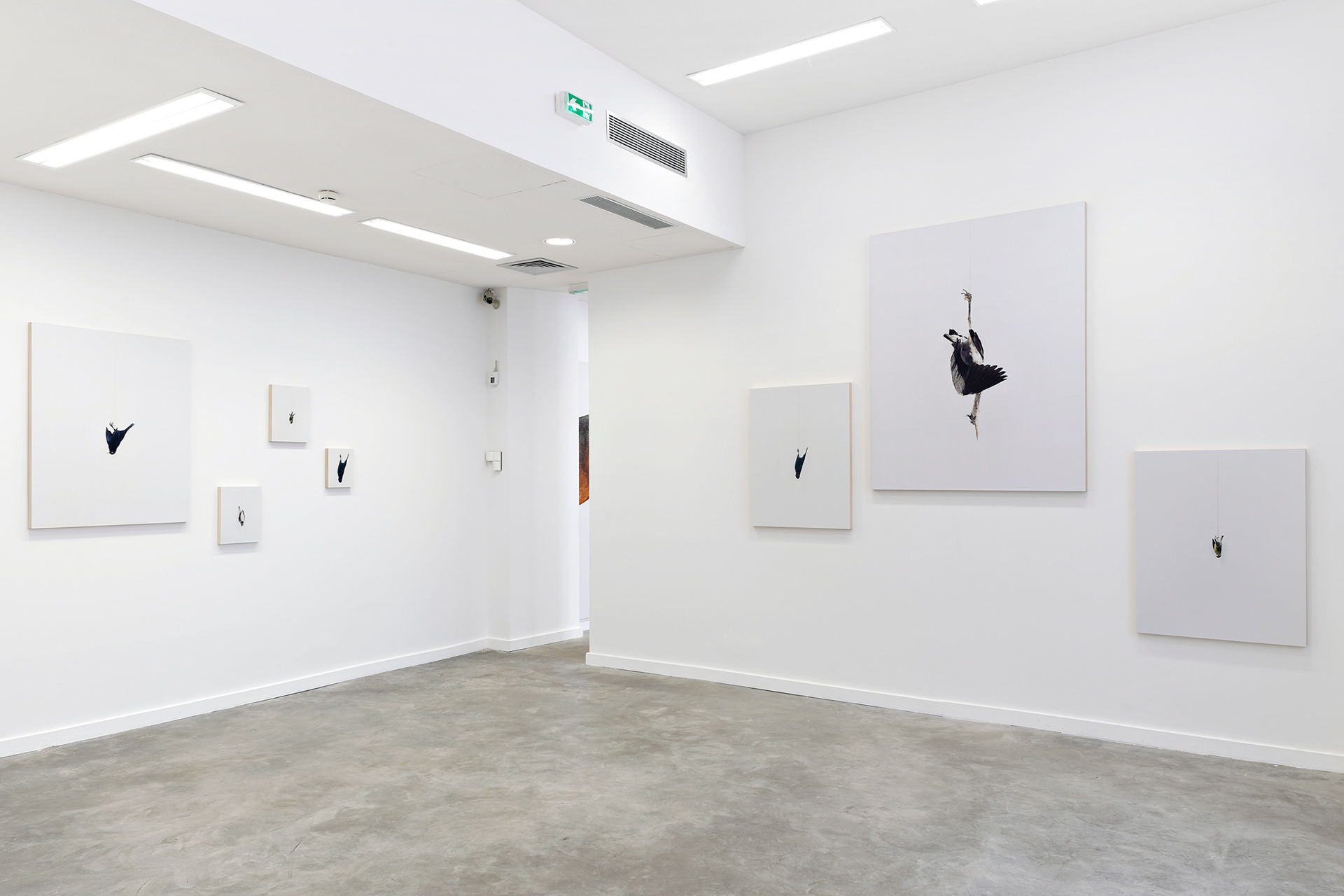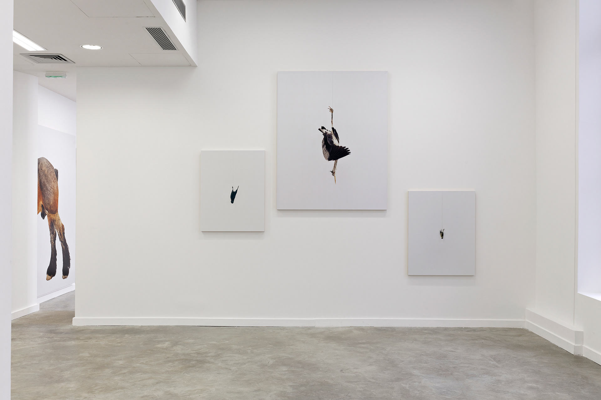 JCV L’une des séries les plus récentes, sur laquelle vous travaillez encore, concerne la photographie d’oiseaux retrouvés morts que vous récupérez ou que des amis vous apportent, et que vous photographiez suspendus à l’envers. Vous collectez ainsi les dépouilles de ces volatils (qui vont des oiseaux les plus communs jusqu’aux rapaces, en passant par les espèces chassées), que vous congelez jusqu’au moment de la prise de vue. Jean-Christophe Bailly a écrit un texte magnifique sur cette série qui pour lui récapitule toutes vos œuvres consacrées aux animaux morts, « tout en s’exilant dans la solitude de ce qu’elle montre – l’abandon, mais juste avant l’abandon, et la mort, mais juste avant l’effacement. » De la chambre froide à la chambre photographique, il y aurait ici un geste qui ne serait pas éloigné de celui de l’embaumeur ?