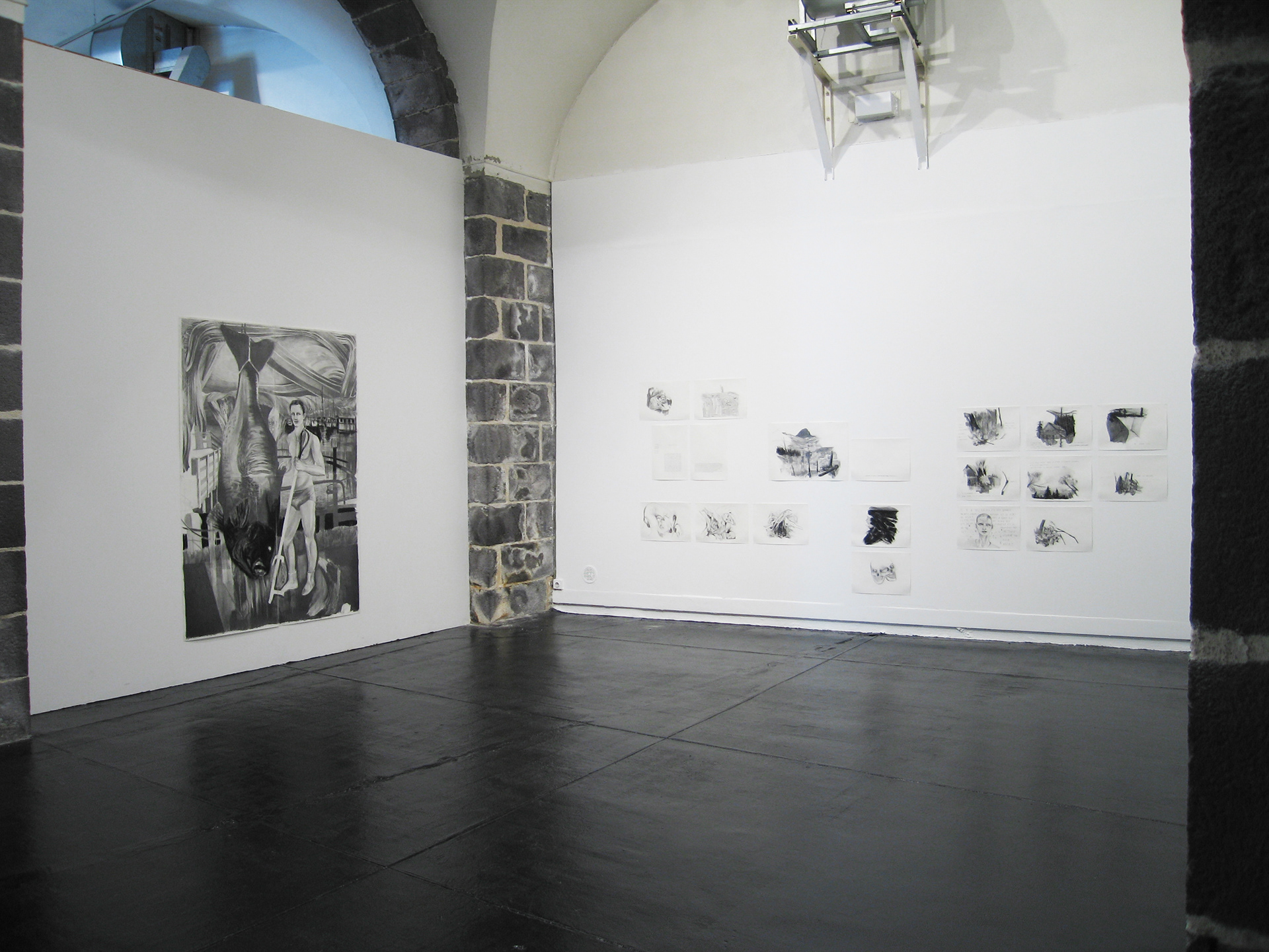 accompagnés souvent de textes bégayants qui dressent en pointillés les bribes d’une narration. L’exposition réalisée par Marc Bauer au FRAC Auvergne s’intitule Laque. L’espace du FRAC, dont le sol a été préalablement recouvert d’une couche de laque noire brillante, accueille plusieurs