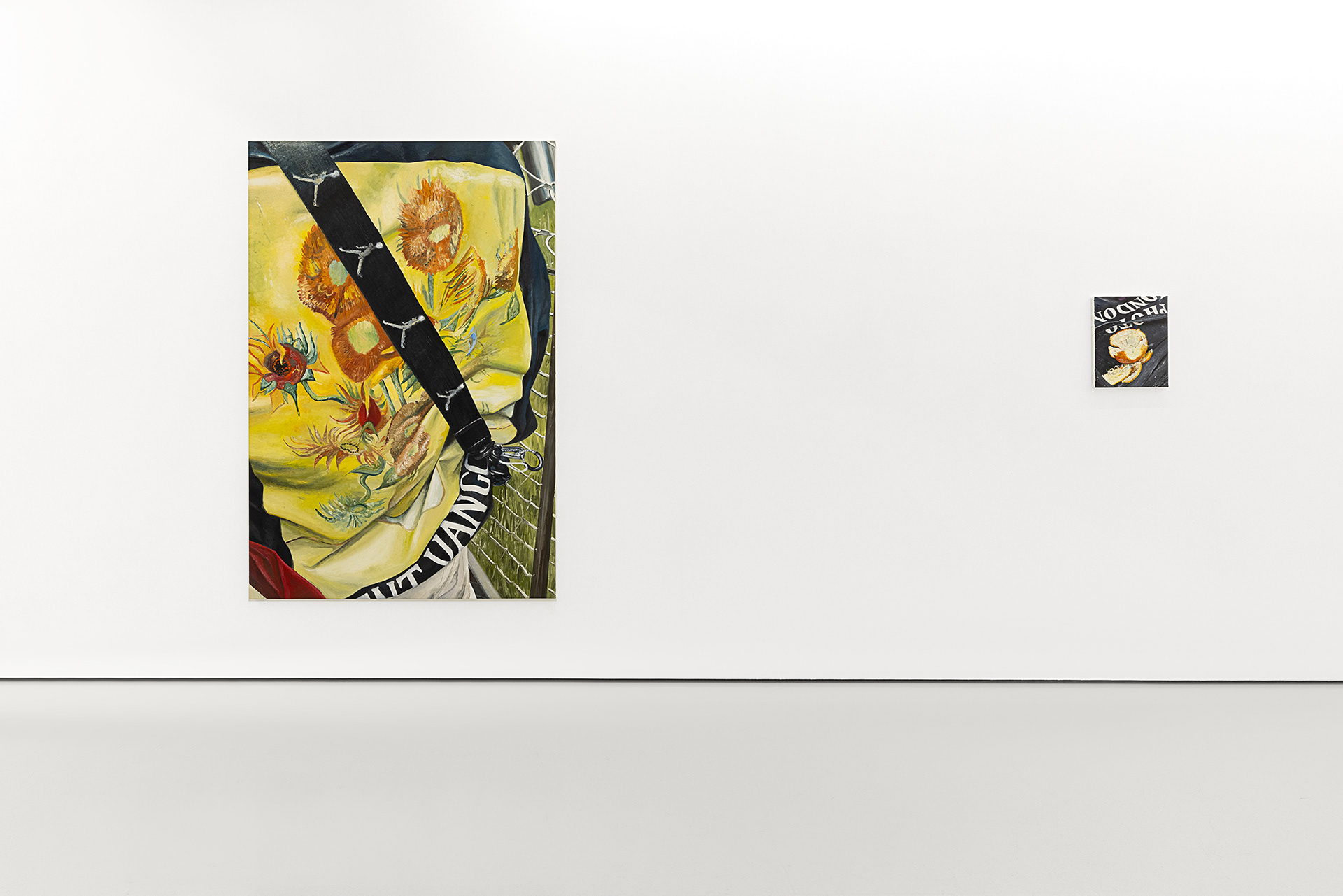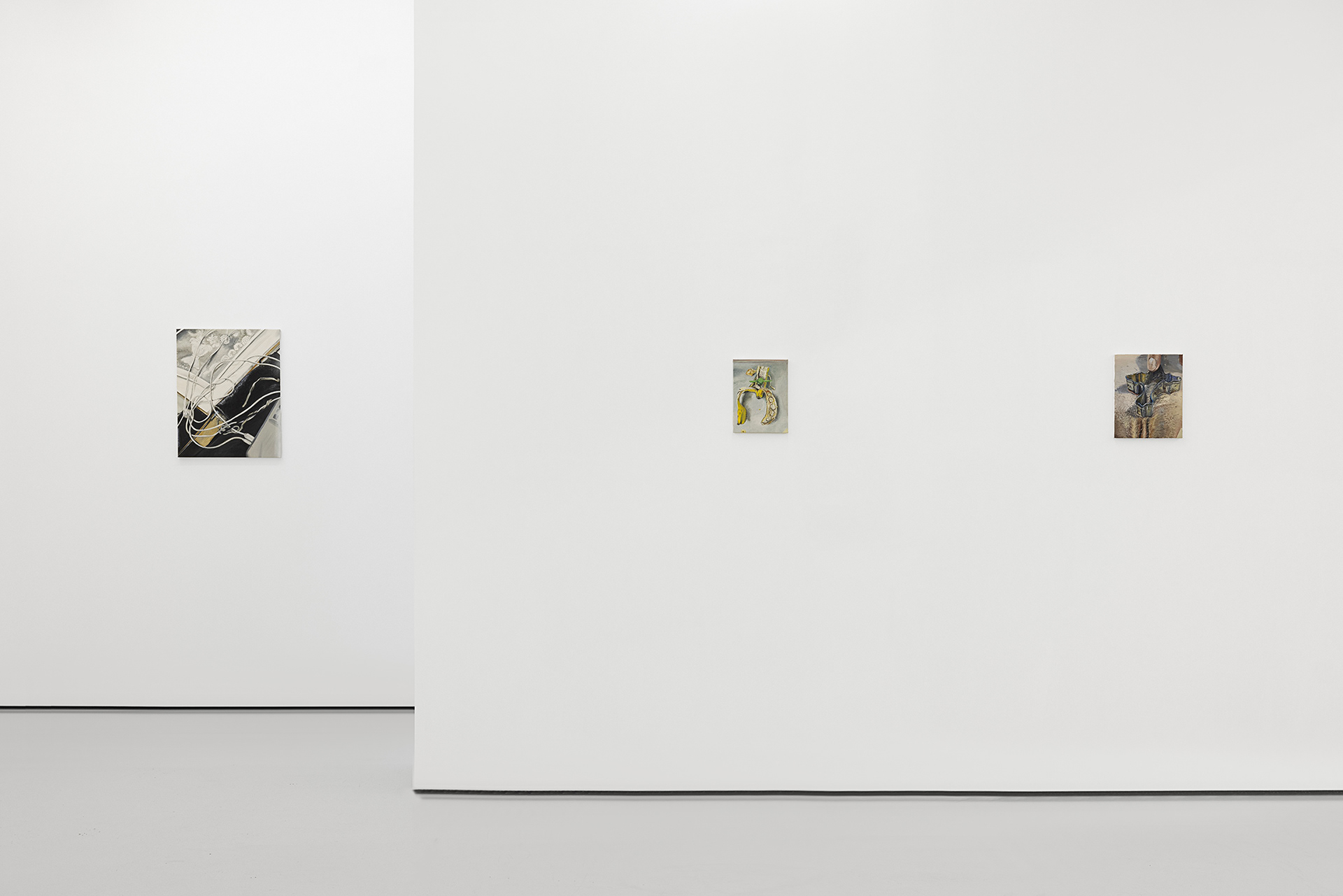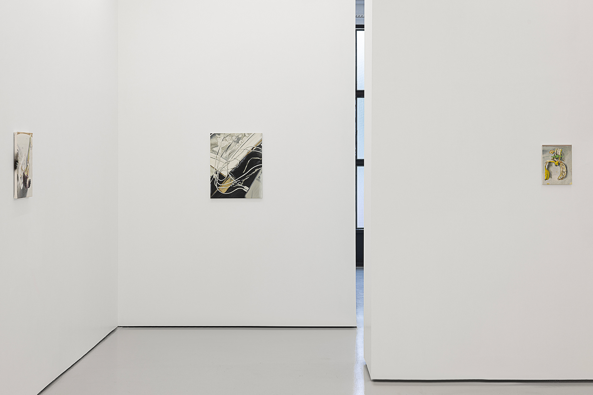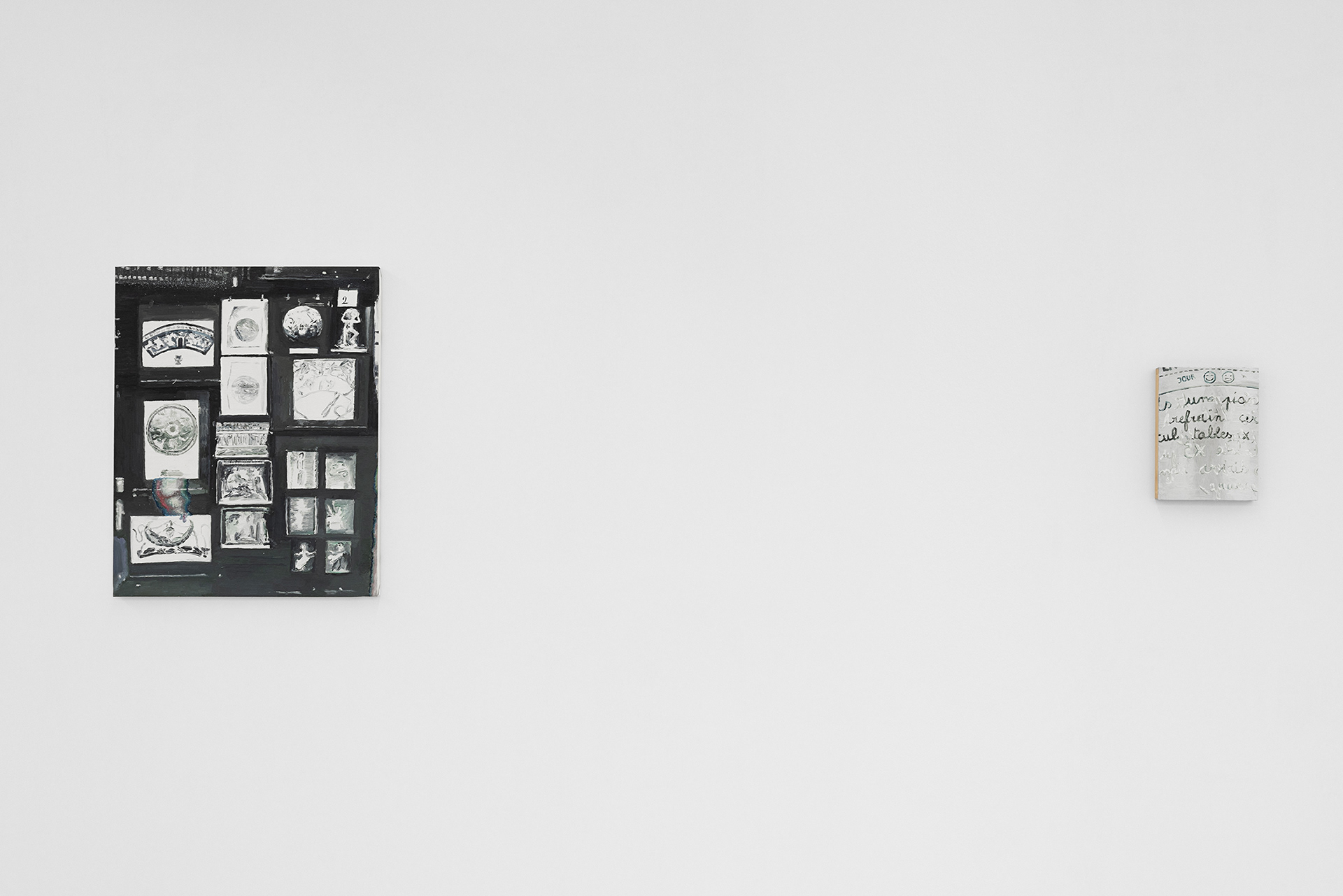 L’exposition s’ouvre sur Planche 2 – A.W. qui représente sur un fond noir une juxtaposition d’images à peine lisibles, laissant deviner les esquisses de corps, de formes géométriques circulaires évoquant tour à tour des sphères, des globes terrestres ou des parements d’ornementation. La peinture est traitée en valeurs de gris, à l’exception de quelques blancs teintés de jaune, de bistres, de verdâtres. La surface est maculée par une tache multicolore et par un épanchement chromatique qui ronge le bord droit du tableau. Ce détail importe car il renseigne sur l’origine photographique de cette peinture : il s’agit de la reproduction d’une image ayant subi une détérioration due à l’eau ou à l’humidité. Un indice est donné par les initiales "A.W." du titre de l’œuvre : ce sont celles du célèbre historien iconologue Aby Warburg et Planche 2 – A.W. est inspirée de son Atlas Mnémosyne, immense work in progress iconographique qu’il conçut entre 1927 et 1929 dans un geste décisif de refonte des principes de la discipline de l’Histoire. Aby Warburg cherchait à retrouver les liens qui semblent secrètement unir des époques et des cultures éloignées à partir de l’examen de leurs images. Ses fameuses planches, qui illustrèrent d’abord ses conférences avant de devenir des formes autonomes exposées dans l’immense bibliothèque de plus de 60.000 ouvrages qu’il constitua, sont les témoignages directs de son concept d’iconologie de l’intervalle ("Ikonologie der Zwischen Raums") : avec Aby Warburg, les images peuvent désormais être comprises différemment, à partir de leurs analogies, de leurs frictions, de leurs connections inattendues. Comme l’énonce Jean-Luc Godard : "il n’y a pas d’image, il n’y a que des images. Et il y a une certaine forme d’assemblage des images [...] Il n’y a pas d’image, il n’y a que des rapports d’images." Néanmoins, le cœur de l’entreprise menée par Aby Warburg ne se loge pas tant dans un archivage d’images interconnectées que dans le regard inédit qu’il porte sur les gestes que ces images donnent à voir. Son projet ne consistait finalement pas à étudier les images mais davantage à examiner de quelle manière tel ou tel type de geste parcourait le temps, d’époque en époque, de culture en culture, soulignant ainsi l’existence d’une gestuelle fondamentale à la civilisation humaine qui pouvait ainsi devenir le prisme particulier d’un regard sur l’Histoire de l’humanité.