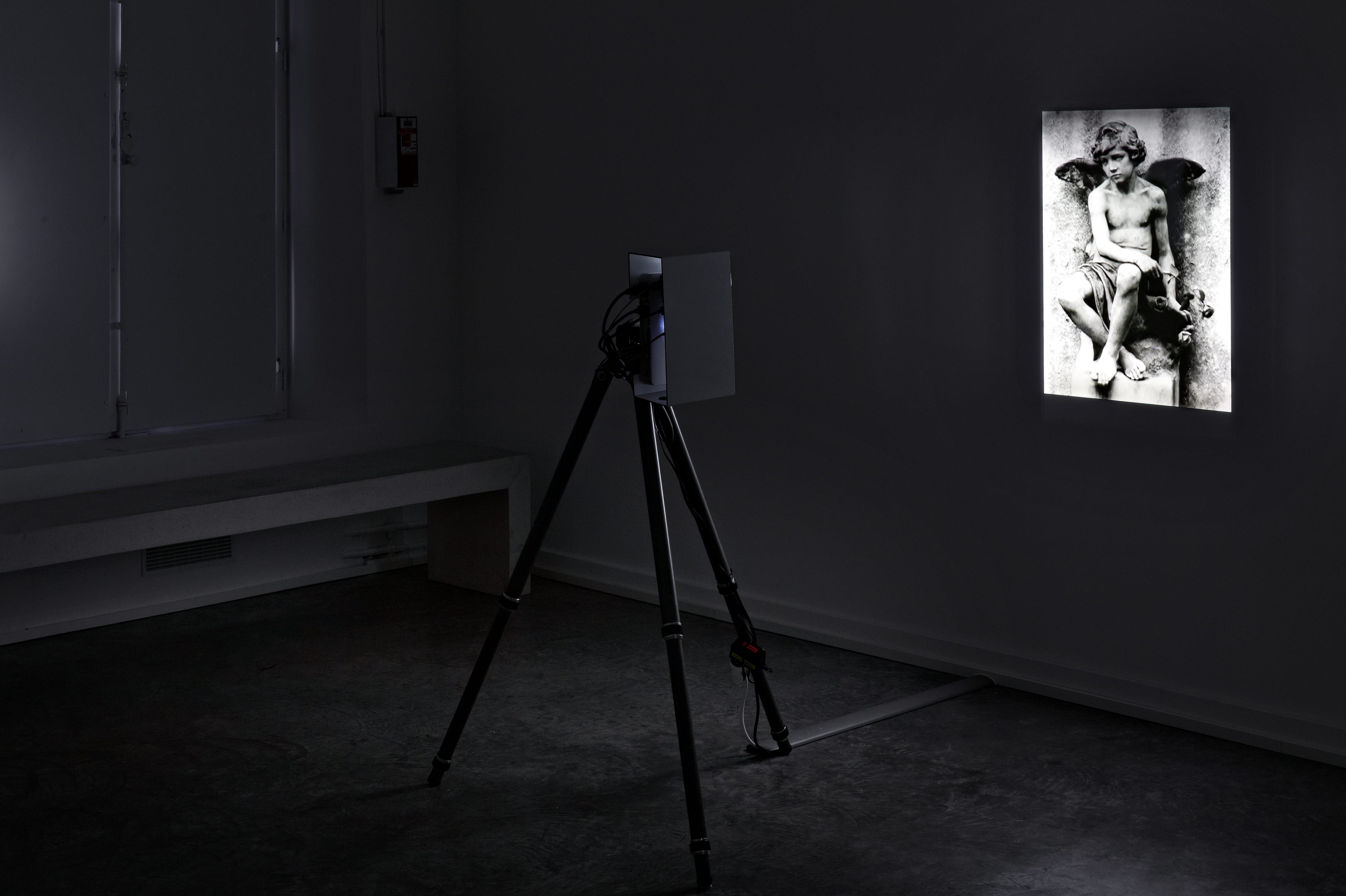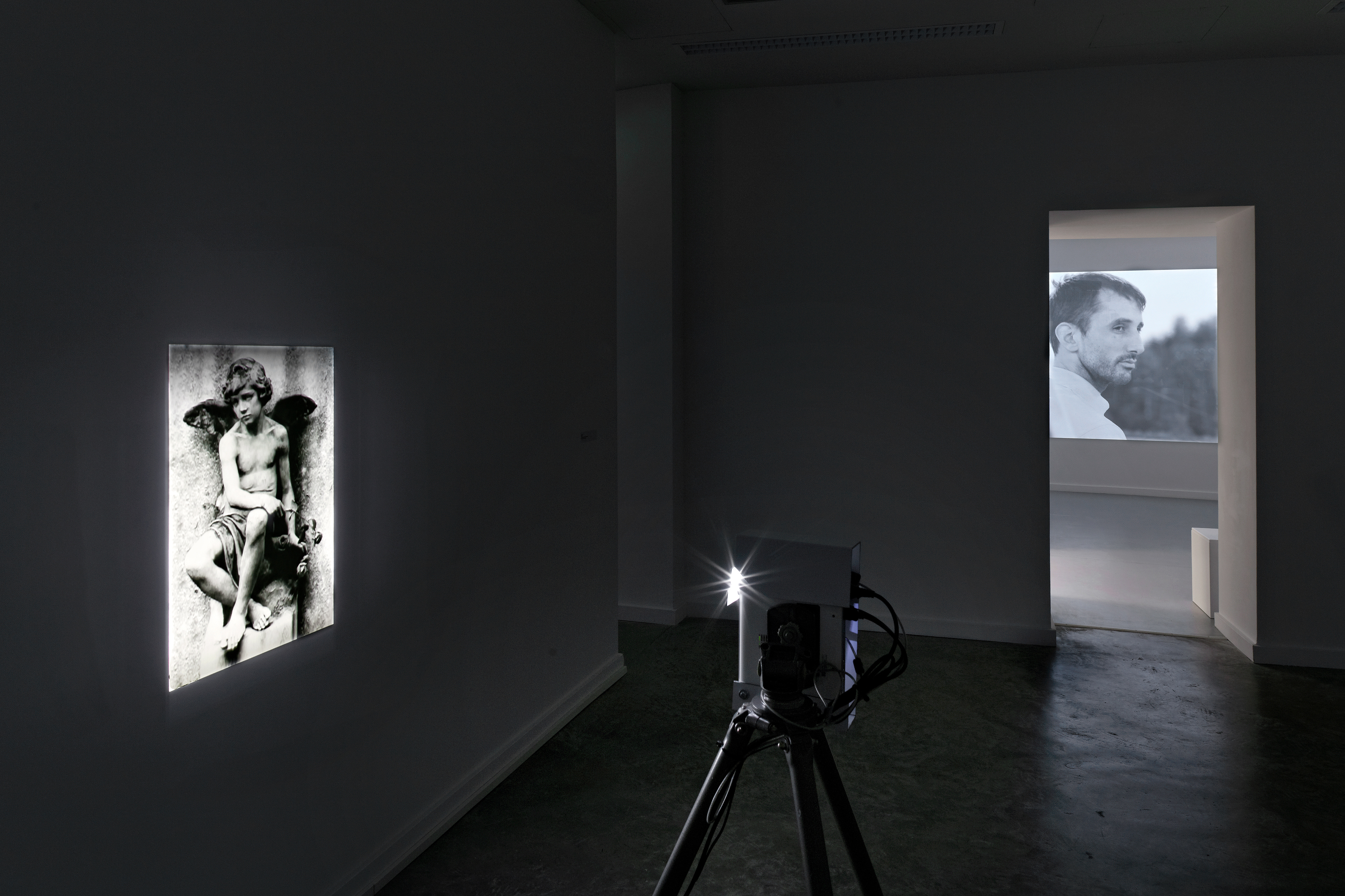 Ma découverte de l’œuvre de David Claerbout a eu lieu en 2003 grâce au peintre Luc Tuymans, auquel j’avais rendu visite à Anvers pour la préparation de son exposition personnelle au FRAC Auvergne. Nous avions visité ensemble l’exposition collective « Once upon a time… », organisée au MUHKA, où était présenté le film de David Claerbout, Angel, réalisé en 1997. Je me souviens avoir été fasciné par sa beauté, par sa durée si paradoxale – dix minutes en boucle desquelles émanait une sensation d’éternité – et, plus spontanément sans doute, par la façon dont une technologie manifestement complexe et très maîtrisée se trouvait employée de manière presque invisible pour produire ce petit dispositif filmique intimiste. Le film muet, noir et blanc, consistait en une image animée de taille réduite projetée à même le mur. Il s’agissait d’un plan fixe cadrant un ange de pierre ornant une tombe, tenant dans une main une rose. Image figée en apparence mais qui, après un laps de temps, révélait sa beauté simple : la rose était mue par une brise infime, le ventre et les épaules de l’ange se soulevaient ostensiblement et, plus encore, c’est l’ensemble de son corps parcouru d’une onde subtile qui, lentement, témoignait d’un souffle qui habitait la statue. Il vivait, imperceptiblement. Le titre de l’exposition annonçait « Il était une fois… », mais de quoi était-il une fois dans le cas de cette image d’archives noir et blanc que l’artiste avait animée pixel par pixel, la plaçant à l’exacte frontière qui sépare la photographie du cinéma ? De quelle histoire s’agissait-il, sinon de celle – assez romantique – que je me fabriquais en tant que spectateur absorbé, presque hypnotisé par le rectangle lumineux d’Angel ?