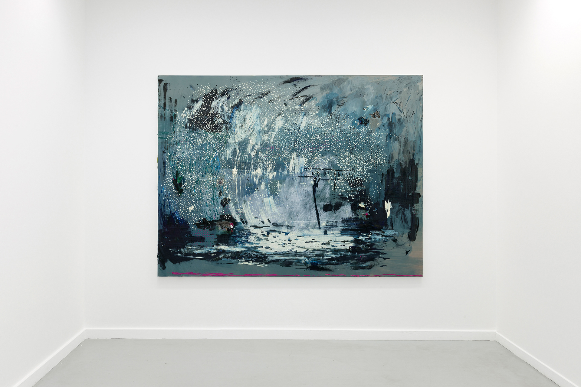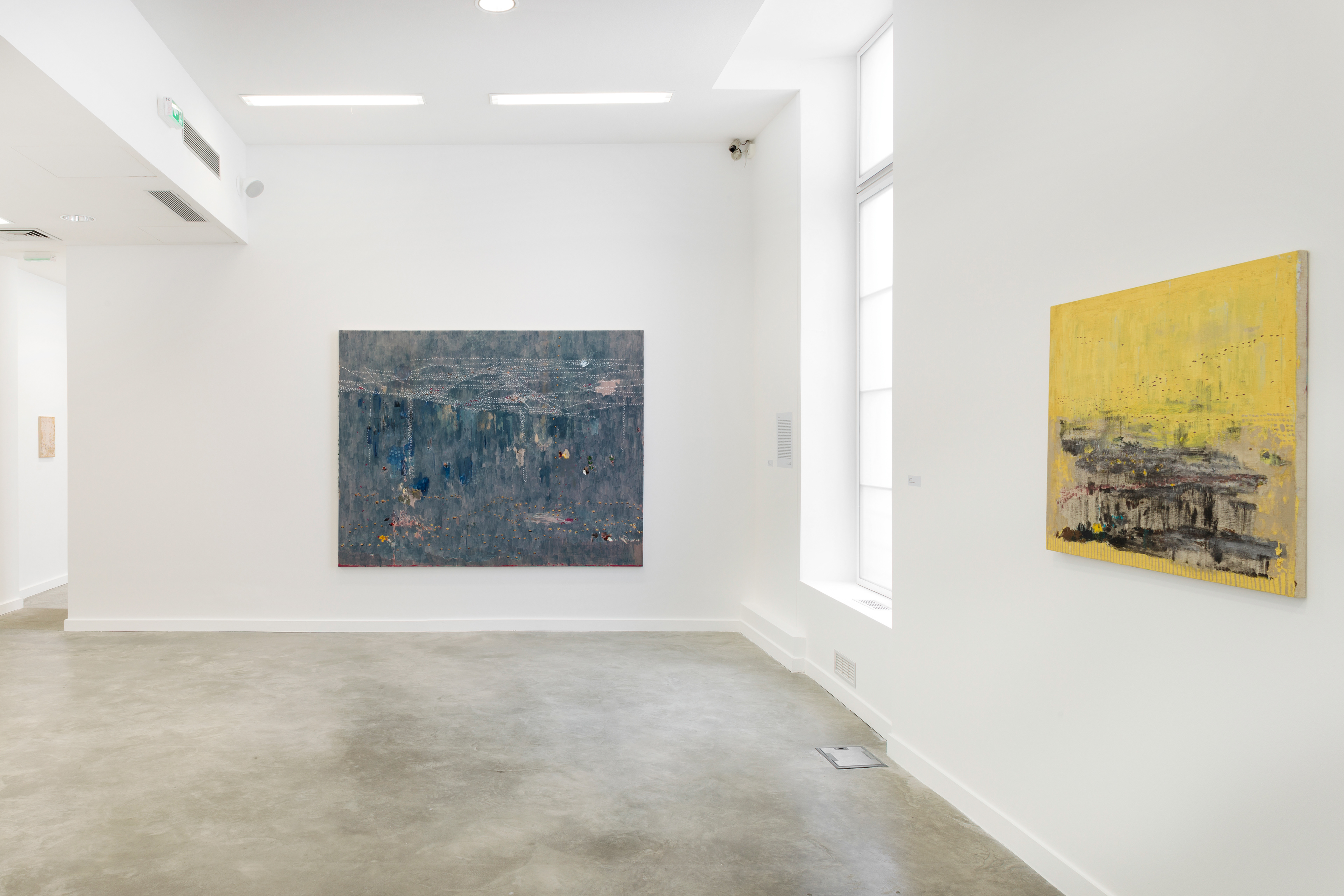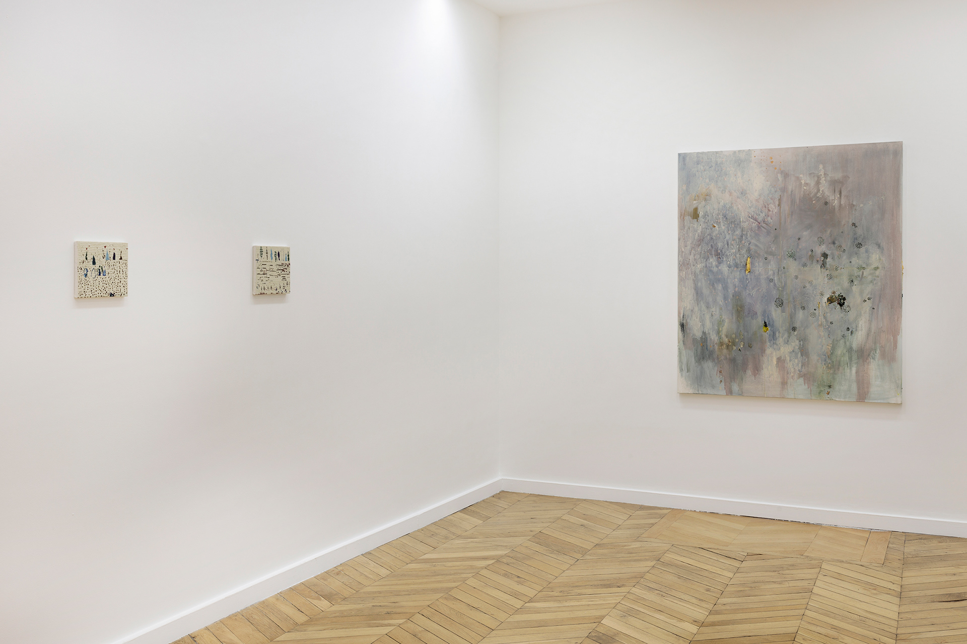 Les peintures et les broderies de Marina Rheingantz se nourrissent de la remémoration des paysages brésiliens, des souvenirs de la compacité de la terre, de la lumière et de ses variations, du nébuleux atmosphérique des crépuscules, de la dissémination pointilliste des oiseaux dans le ciel, du surgissement en grappes de fleurs et d’arbustes, de monticules émergés à la surface des plaines inondées… En regardant ses peintures pour la première fois, quelques mots se sont manifestés avec entêtement. Les premiers furent arrêté sans être fixé, pour qualifier la manière dont cette peinture oblige à une mise à l’arrêt du regard, une mise à l’arrêt simultanément contrariée par l’écarquillement visuel impulsé par le feuilletage de plans et de motifs, par les plongées aériennes d’étendues sans horizon parsemées de motifs en suspension, d’agglomérats de lumière, de poussières, de phosphènes, de nuées d’éphémères microscopiques, pailletées de particules de réel figées en apparence et pourtant toujours mouvantes. Le regard est mis aux arrêts, littéralement mis en détention, stoppé dans son arpentage par la résistance de la peinture, par la compacité de sa surface, par la trame de motifs et de signes qui en parsèment les aires et s’y superposent comme des filtres ajourés. Le regard est à l’arrêt, sans être fixé – à l’arrêt comme un animal se met à l’arrêt, toujours en puissance de mouvement prompt, toujours aux aguets.