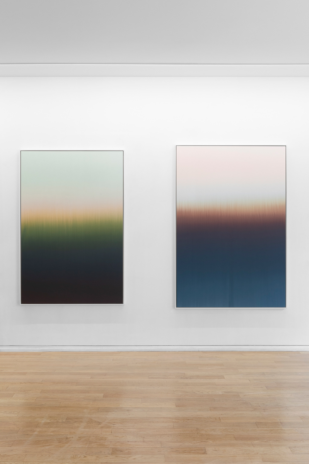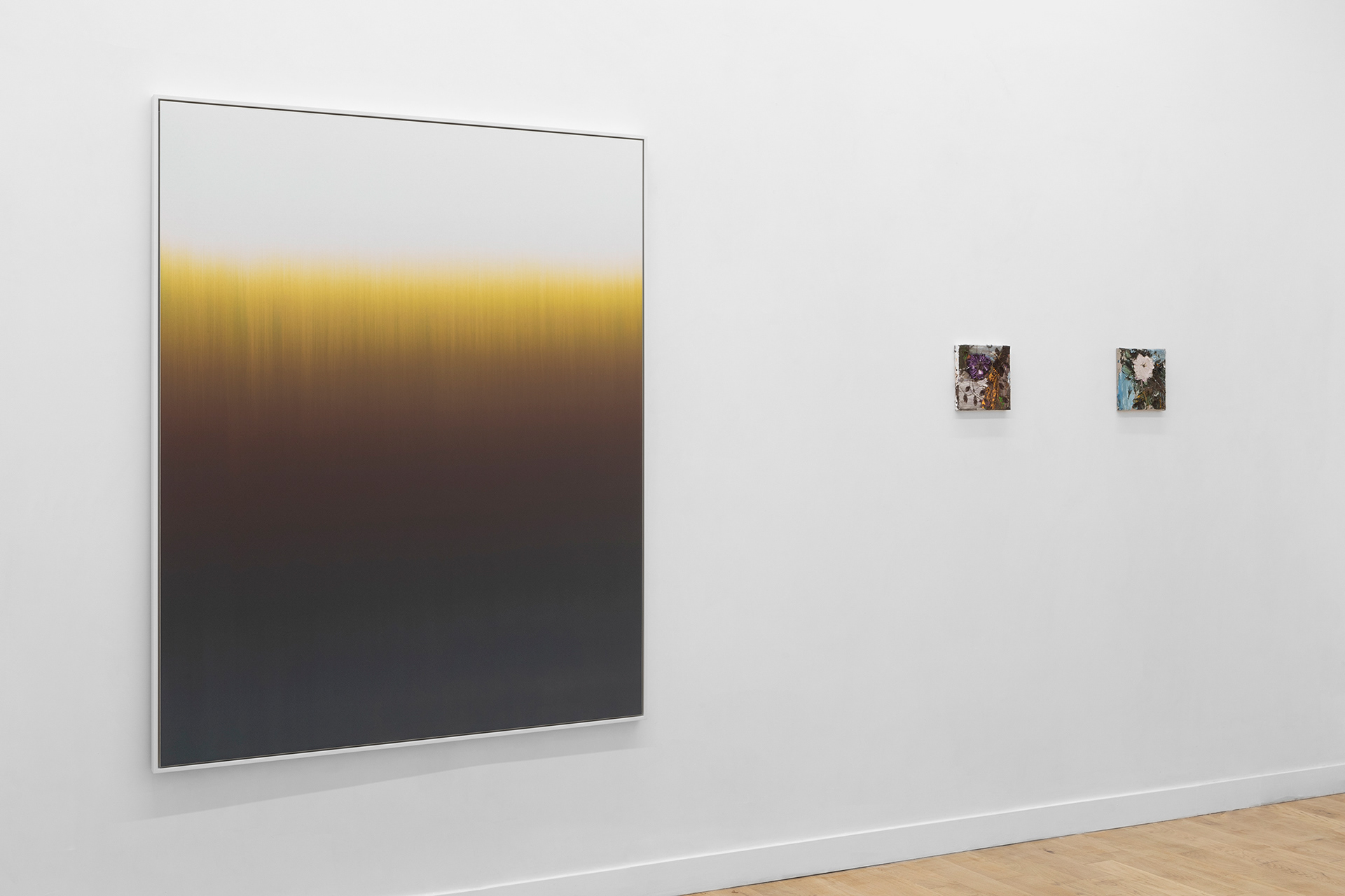 l’extinction de la couleur, submergée par elle-même et par les propriétés additives irréversibles des tons : submersion sans retour possible de la couleur par ses recouvrements liquides successifs pour Claire Chesnier ; enlisement des tons dans une fange limoneuse pour Denis Laget. Pourtant, l’un comme l’autre parviennent à cet état limite improbable où le sublime advient aux abords de la déréliction.