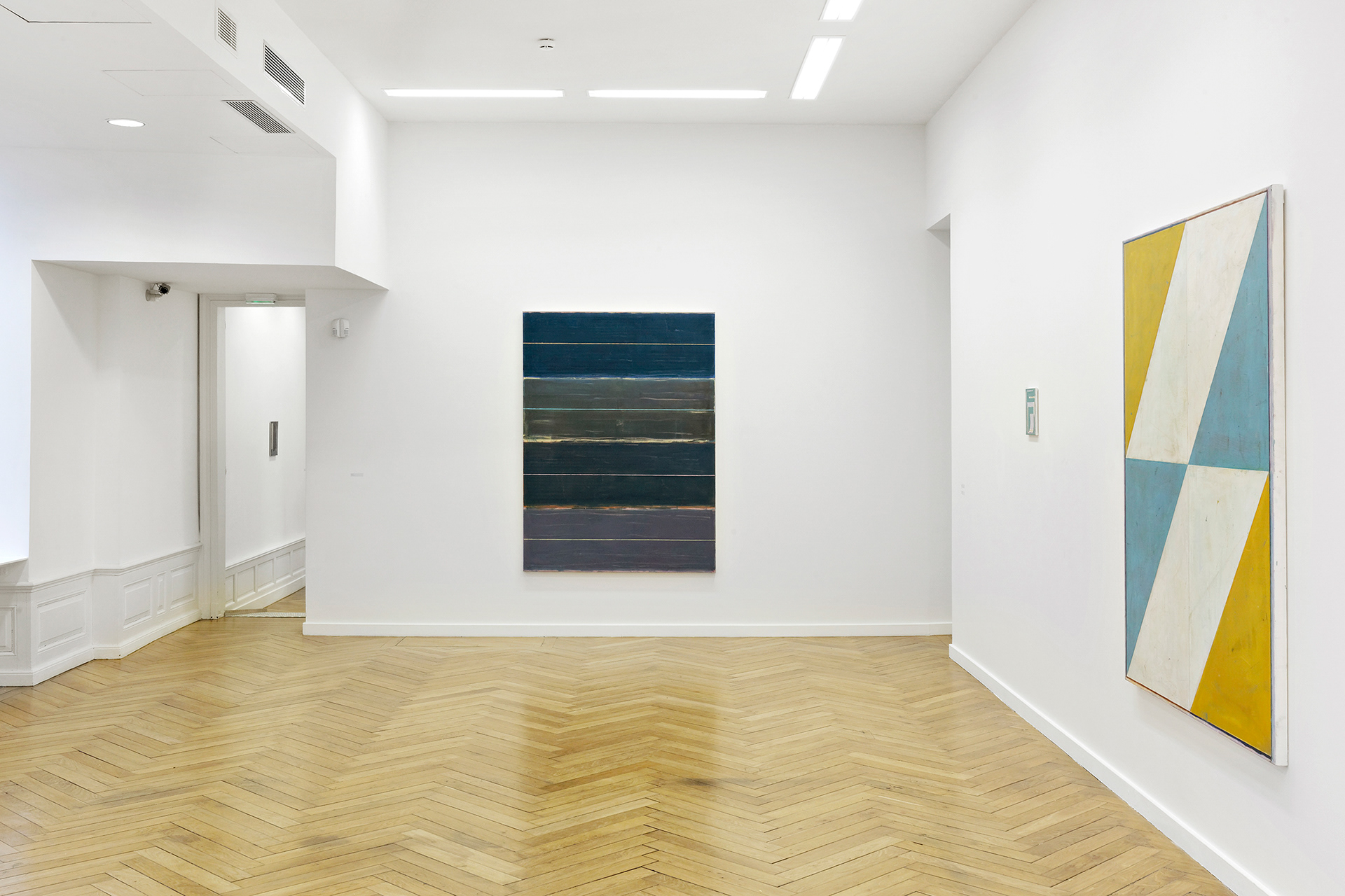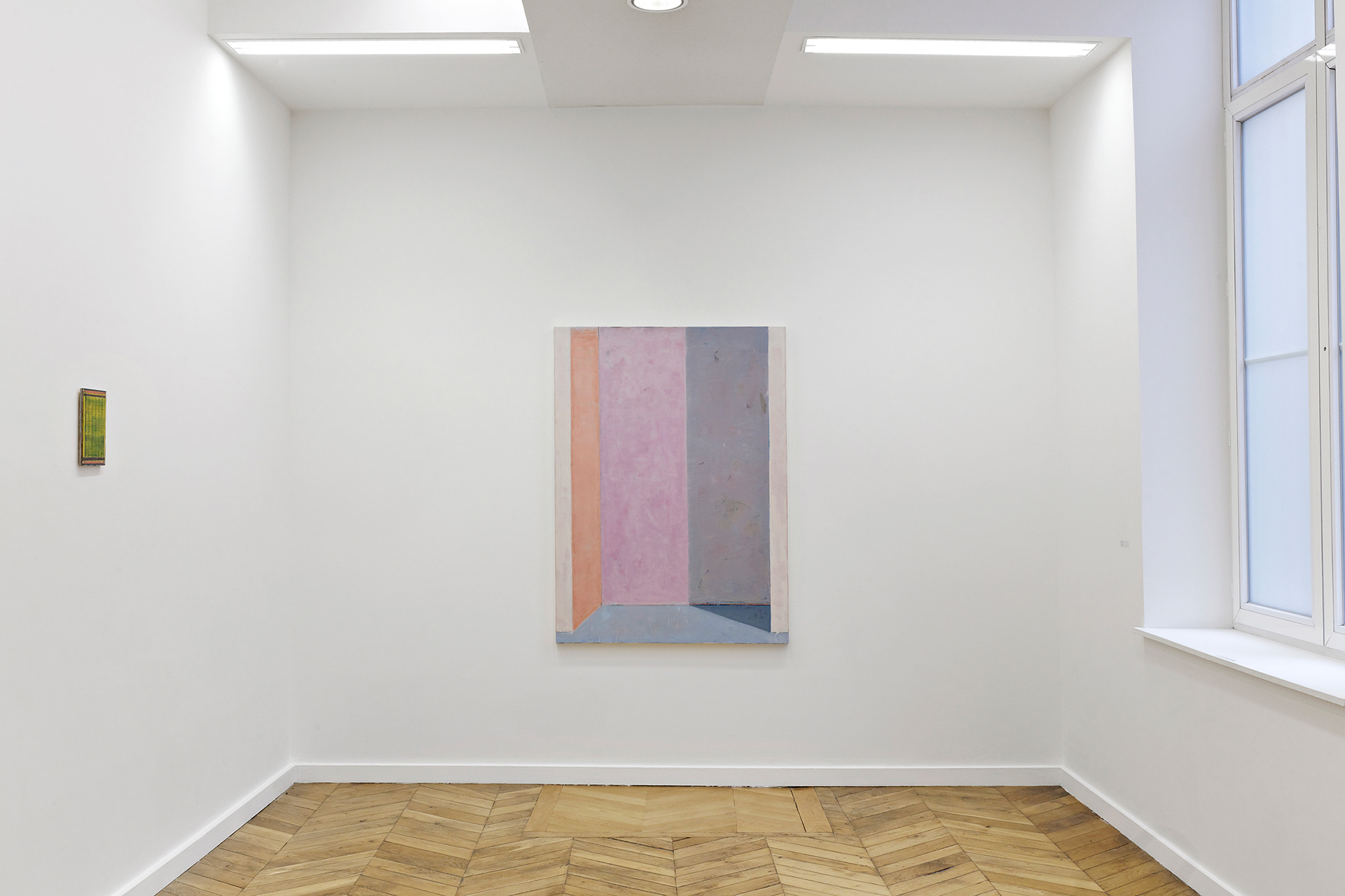 solitude et d'ennui dans l'atelier mais parce que ce mur, ou la fenêtre de l'atelier, le store, l'embrasure de la porte, fondent un monde en soi. En qualité de sujets littéraux ils sont inépuisables comme l'est, par exemple, le vers de Marcelin Pleynet, "le mur du fond est un mur de chaux (1)" que pourrait évoquer l'huile sur papier intitulée Holzwand ("Mur de bois") dont la littéralité permet une ouverture grand angle du champ pictural. L’œuvre de Pius Fox s'inscrit autant dans un héritage de la peinture abstraite que dans celui, très hétérogène, d'une histoire du plaisir de peindre où le sujet est prétexte à l'acte de peindre,